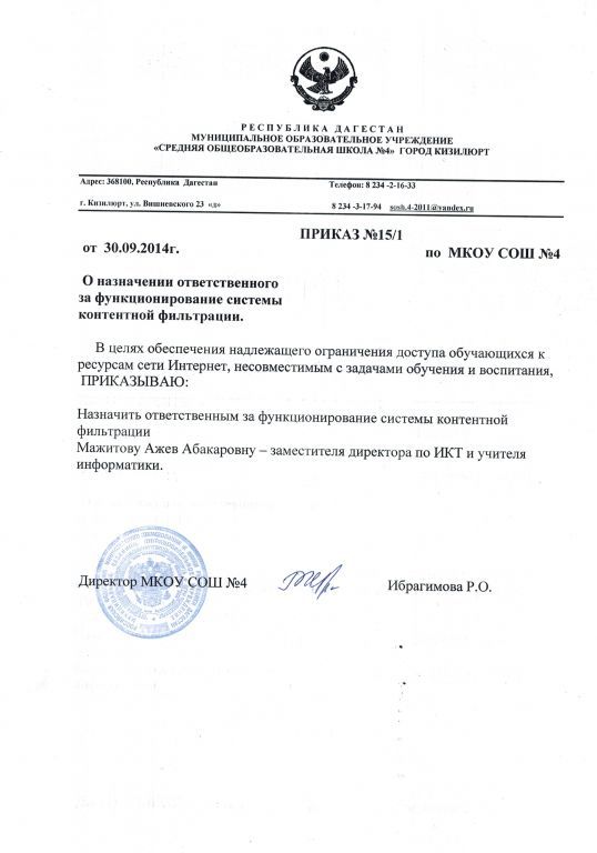 Приказ о назначении отв контентфильтрации (скачать) (посмотреть)